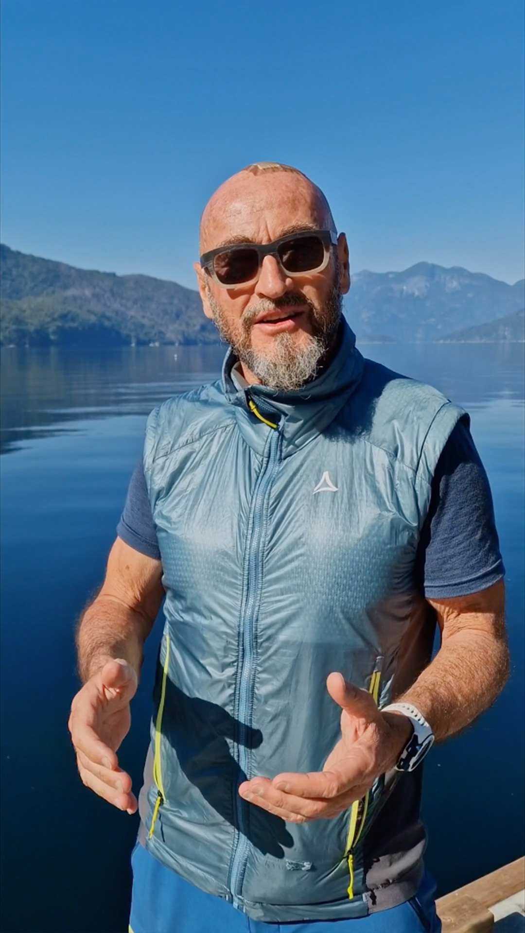Ich habe viel erlebt in meinem Leben, aber das war unfassbar. Ich fahre mit meinem Sohn mit dem Kajak über den Fjord (Homfray Channel), wir wollten nur ein paar Drohnenaufnahmen machen von uns beim Paddeln. Wir paddeln dort vor uns hin und plötzlich taucht direkt neben uns ein riesiger Wal auf.